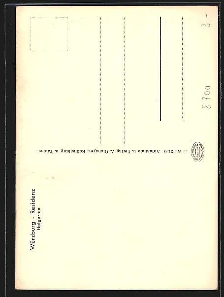 Personenbezogene Daten auf der Rückseite der Karte wurden durch blauen Textmarker unkenntlich gemacht. Die blauen Stellen sind auf die Vorderseite durchgeweicht und wirken sich negativ auf das Postkartenfoto aus