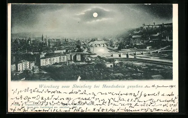 AK Würzburg, Stadtansicht vom Steinberg aus