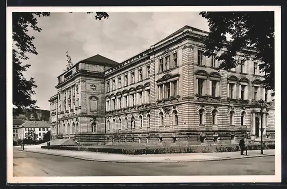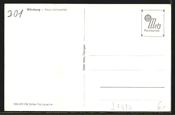 Personenbezogene Daten auf der Rückseite der Karte wurden durch blauen Textmarker unkenntlich gemacht. Die blauen Stellen sind auf die Vorderseite durchgeweicht und wirken sich negativ auf das Postkartenfoto aus