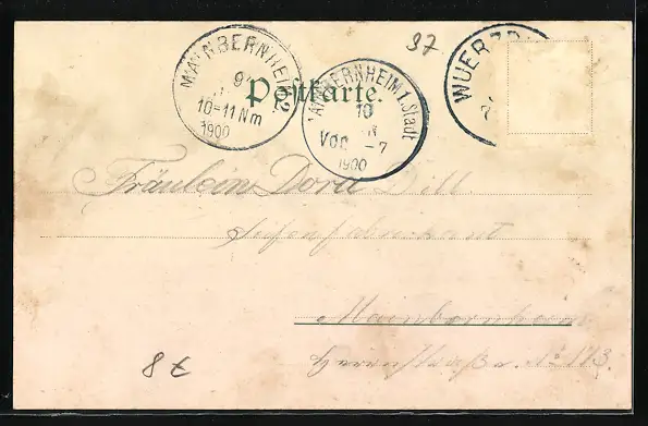 gelaufen 1900, Briefmarke entfernt, Eckknick li. oben, guter Zustand