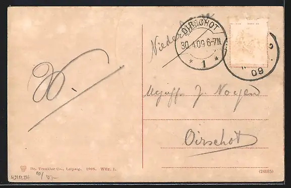 alte Ansichtskarte, gelaufen 1909, Briefmarke entfernt, guter Zustand