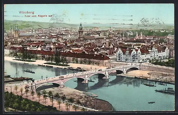 AK Würzburg, Totalansicht vom Käppele aus