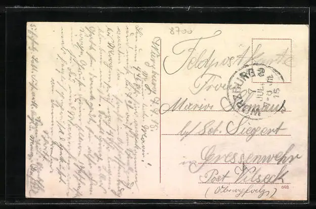 gelaufen als Feldpost 1915, guter Zustand