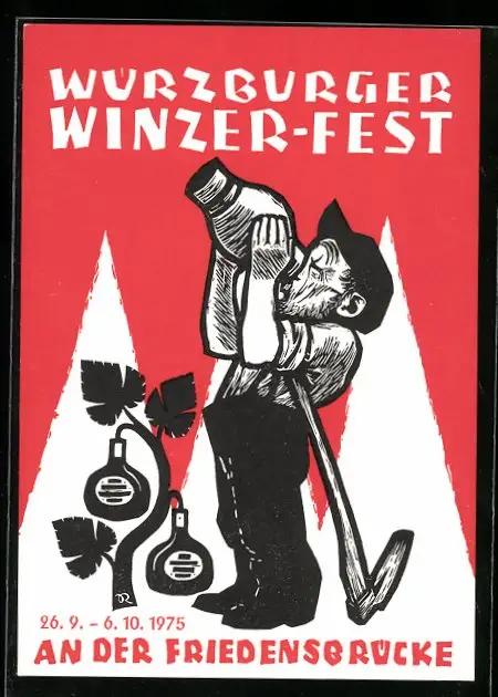 AK Würzburg, Winzerfest 1979, an der Friedensbrücke, Winzermännle