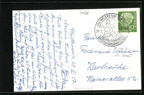 AK Wüstenrot, Ansicht eines grossen Hauses mit Balkon