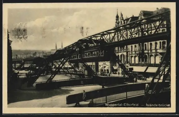 AK Wuppertal-Elberfeld, Isländerbrücke, Schwebebahn