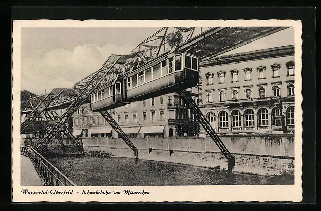 AK Wuppertal-Elberfeld, Schwebebahn am Mäuerchen
