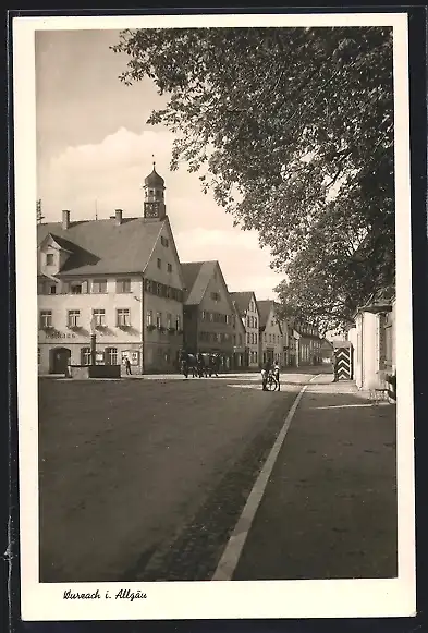 AK Wurzach i. Allgäu, Strassenpartie mit Rathaus