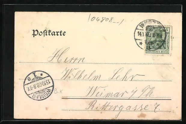 alte Ansichtskarte, gelaufen 1908, guter Zustand
