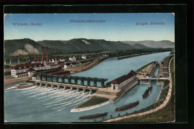 AK Wyhlen /Baden, Rheinkraftwerke aus der Vogelschau