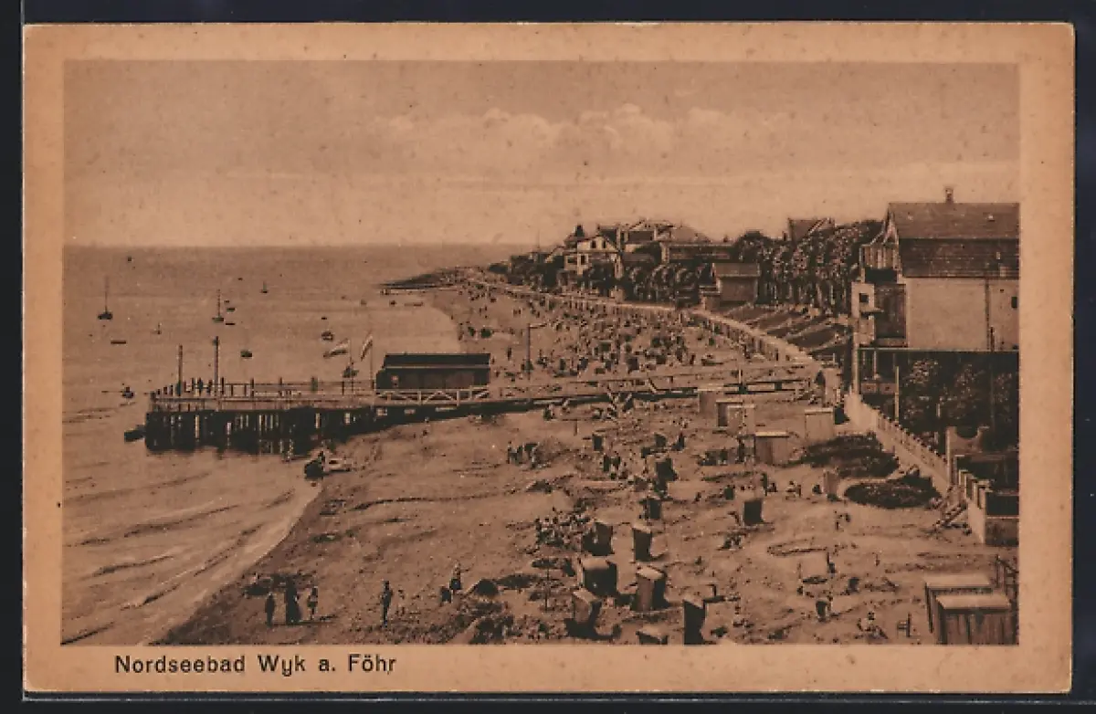 AK Wyk a. Föhr, Strand, Seebrücke, Strandkörbe