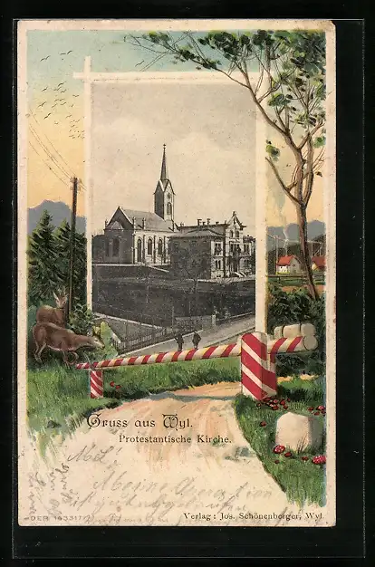 AK Wyl, Protestantische Kirche, Grenzübergang-Passepartout