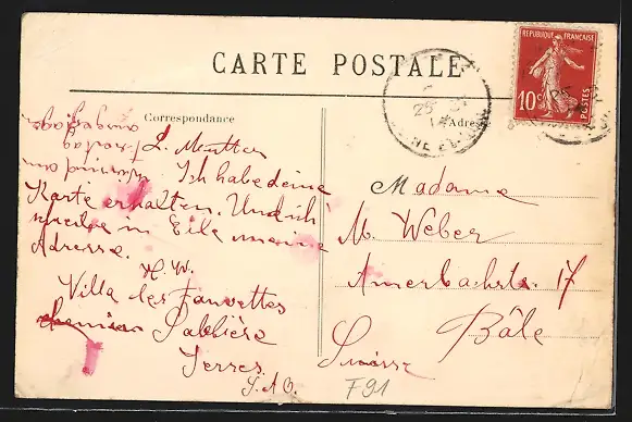 gelaufen 1914, Eckknicke re. oben u. li. unten, kleiner Einriss unten mittig, guter Zustand