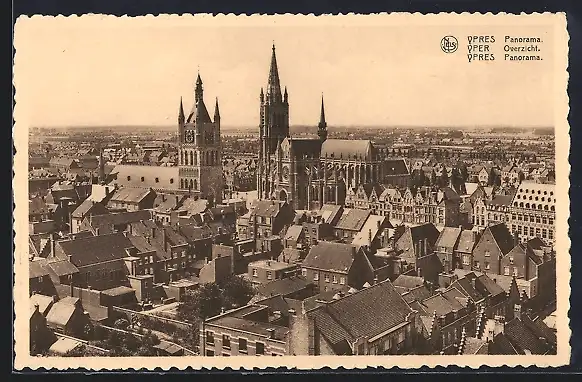 AK Ypres, Panorama mit Kirche