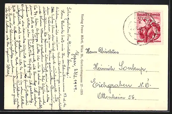 alte Ansichtskarte, gelaufen 1949, guter Zustand