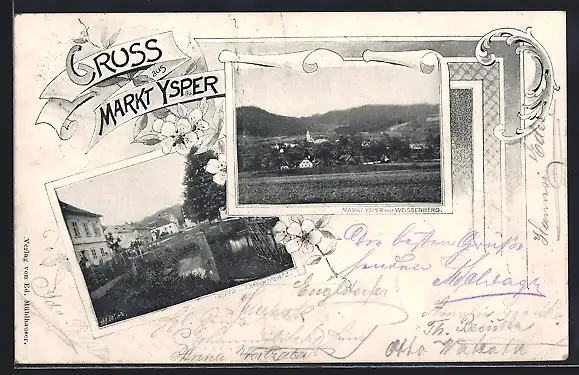 AK Yspertal, Markt Ysper, Ortsansicht mit Weissenberg, Marktplatz