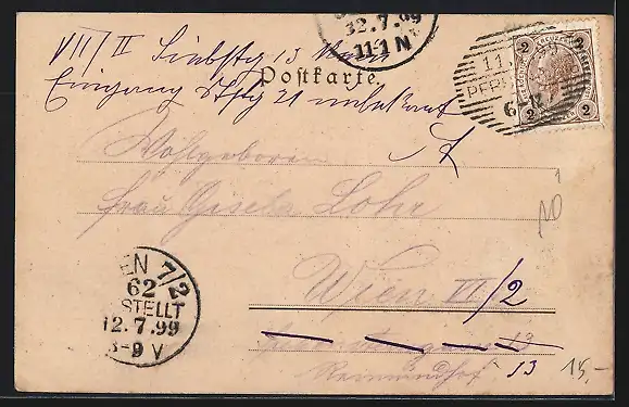alte Ansichtskarte, gelaufen 1899, Eckknick re. unten, guter Zustand