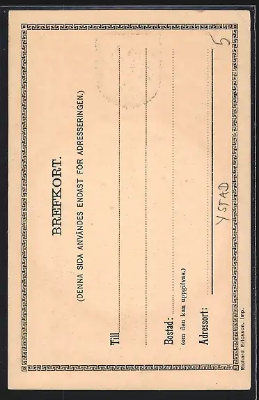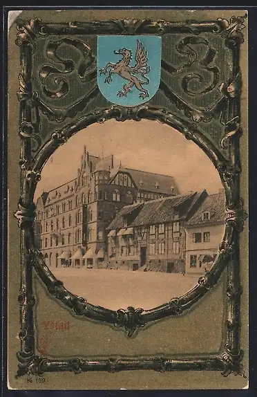 AK Ystad, Ortspartie im Passepartout mit Wappen