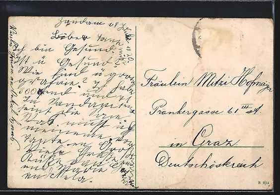 alte Ansichtskarte, gelaufen, Briefmarke entfernt, Ecken bestoßen, guter Zustand