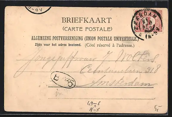 gelaufen 1902, Ecken bestoßen, Stempelspur, Stecknadelloch oben mittig, guter Zustand