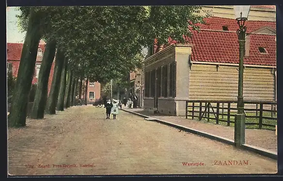 AK Zaandam, Westzijde, Strassenpartie mit Kindern
