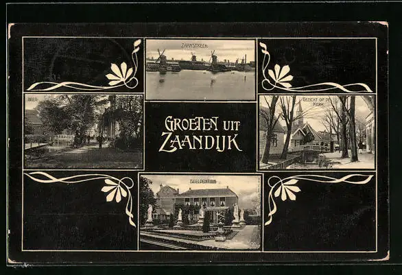AK Zaandijk, Zaanstreek, Gezicht op de Kerk, Beeldentuin