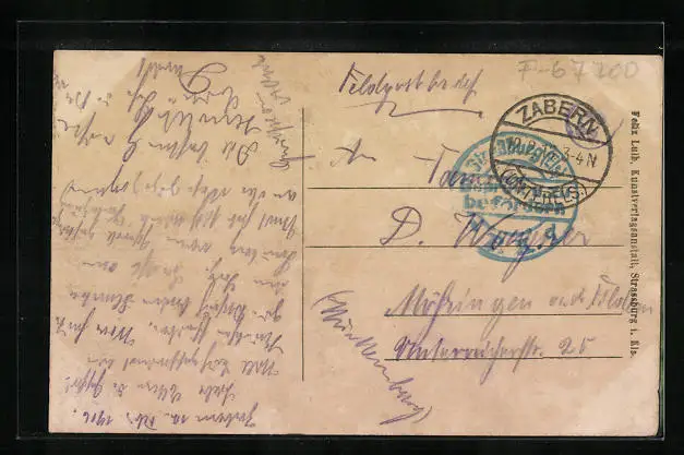 gelaufen 1916 als Feldpost, Albumspuren, guter Zustand