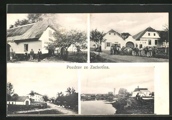 AK Zachotin, Hostinec, Gebäudeansicht, Strassenpartie