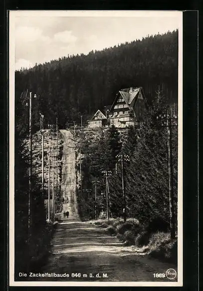 AK Zackelfallbaude, Ansicht Strasse zur Berghütte