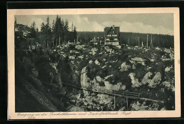 AK Zackelfallbaude mit Eingang in die Zackelklamm