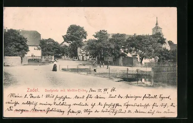 AK Zadel, Dorfplatz mit Wettin-Eiche