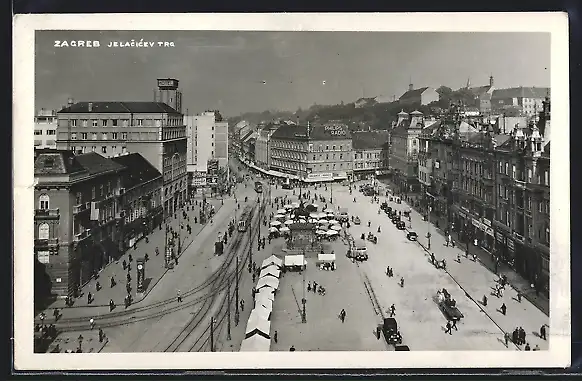 AK Zagreb / Agram, Jelacicev Trg, Marktstände, Strassenbahn