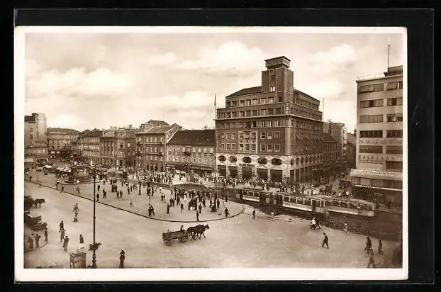 AK Zagreb, Jelacicev trg, Ortspartie mit Strassenbahn