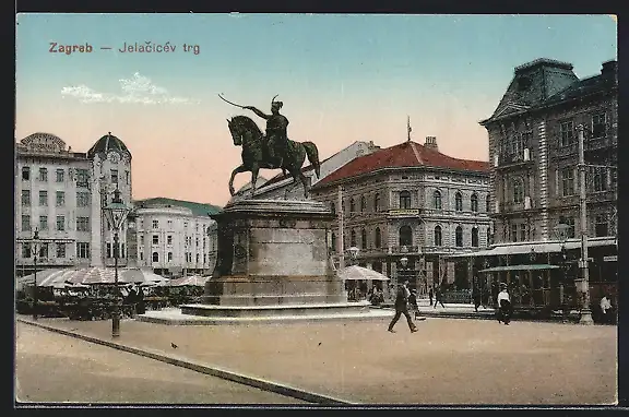 AK Zagreb, Jelacicév trg, Strassenbahn