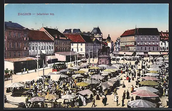 AK Zagreb, Jelacicev trg., Strassenbahn
