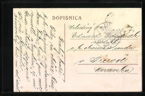gelaufen 1907, Briefmarke entfernt, Eckknick oben links, guter Zustand