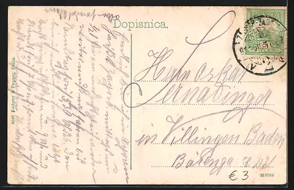 gelaufen 1914, Eckknick re. unten, guter Zustand