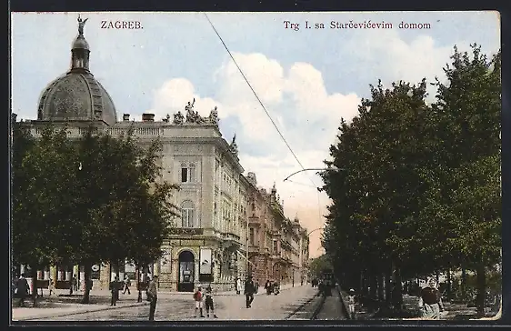 AK Zagreb, Trg I. sa Stracevicevim domom mit Strassenbahn
