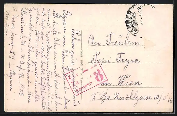 alte Ansichtskarte, gelaufen, Briefmarke entfernt, rückseitig Oberflächenschaden, guter Zustand