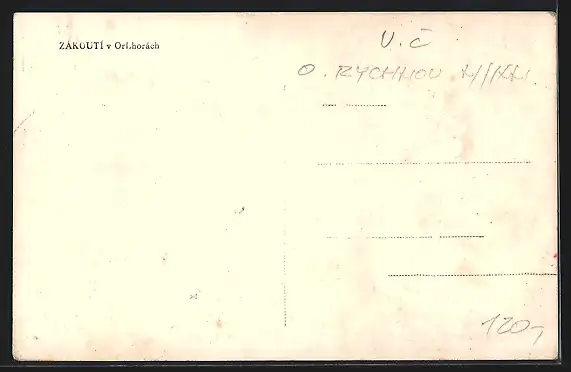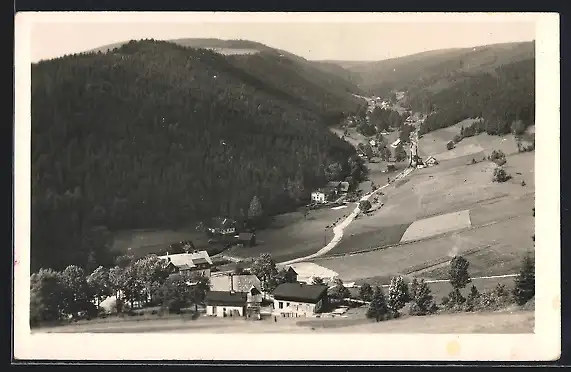 AK Zákoutí v Orl. Horách, Totalansicht des Ortes mit Wald