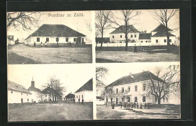 AK Zalsi, Hostinec, Strassenpartie, Kirche