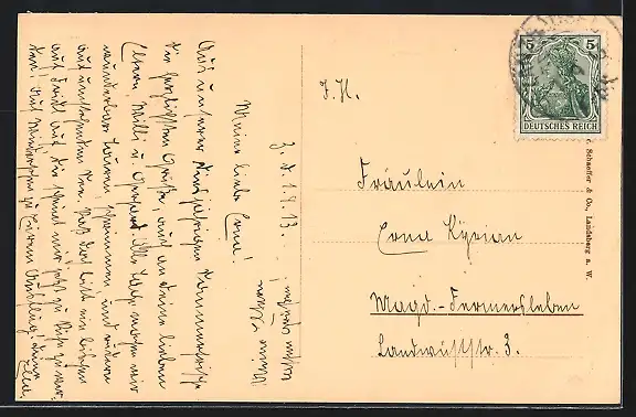 alte Ansichtskarte, gelaufen 1913, Stempelspur, guter Zustand