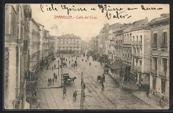 Personenbezogene Daten auf der Rückseite der Karte wurden durch blauen Textmarker unkenntlich gemacht. Die blauen Stellen sind auf die Vorderseite durchgeweicht und wirken sich negativ auf das Postkartenfoto aus