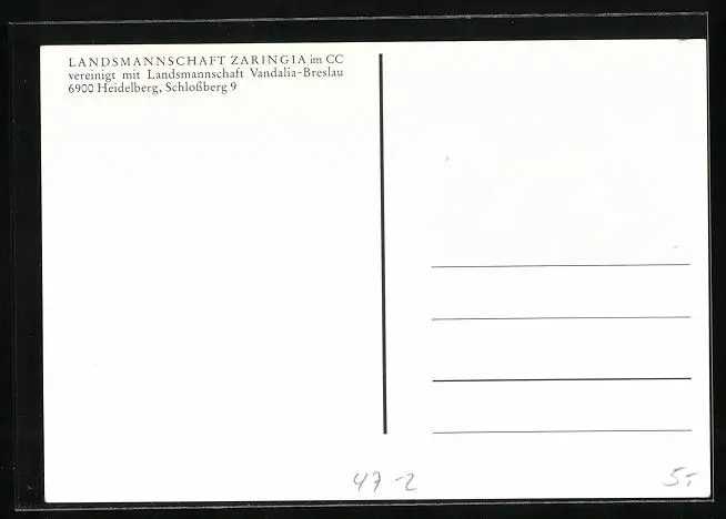 Personenbezogene Daten auf der Rückseite der Karte wurden durch blauen Textmarker unkenntlich gemacht. Die blauen Stellen sind auf die Vorderseite durchgeweicht und wirken sich negativ auf das Postkartenfoto aus