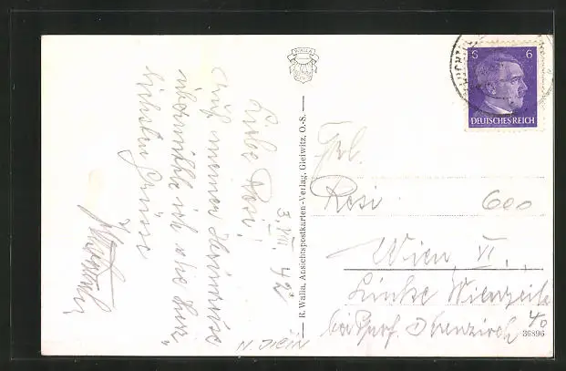 alte Ansichtskarte, gelaufen 1942, Abriebspur, guter Zustand