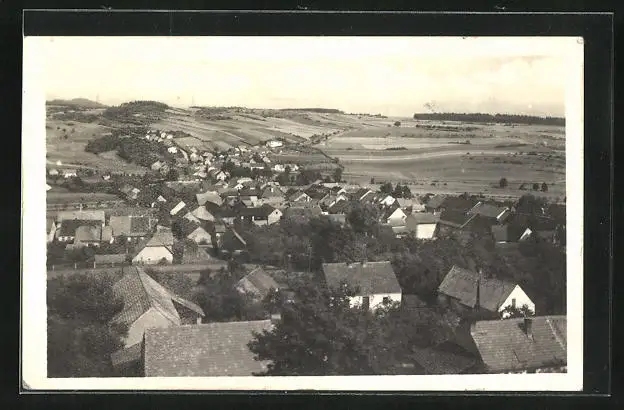 AK Zbiroh, Ortsansicht mit Felderlandschaft