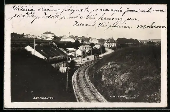 AK Zbraslavice, Häuser an der Eisenbahnstrecke