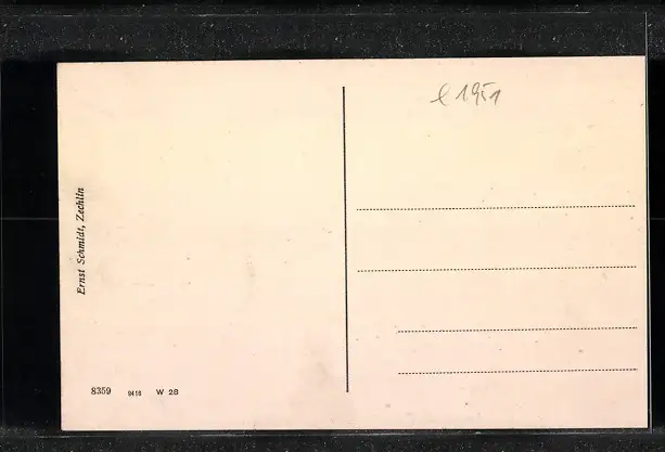 Personenbezogene Daten auf der Rückseite der Karte wurden durch blauen Textmarker unkenntlich gemacht. Die blauen Stellen sind auf die Vorderseite durchgeweicht und wirken sich negativ auf das Postkartenfoto aus