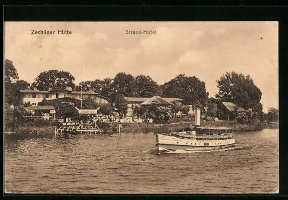 AK Zechliner Hütte, Uferpartie mit Strand-Hotel