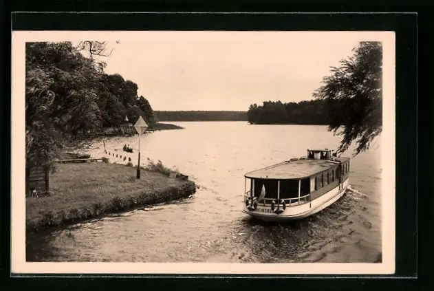AK Zechlinerhütte, Motorboot Rheinsberg auf dem Schlaborn-See